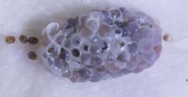 Proper disposal method for a clutch is to remove the clutch is after 48 hours of being laid, put it into a Ziploc bag and place it in the freezer for 24 hours. After 24 hours in the freezer, keep it in the Ziploc bag and smash the clutch into a fine powder. Then you can add the powder back into the water as a calcium source or trash the powder.
